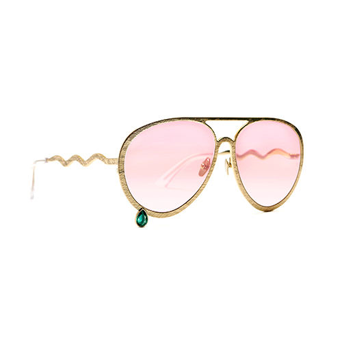 Francis De Lara’nın bu şık güneş gözlüğü farklı stilleri denemek isteyen gözlük severler için ideal bir alternatif. Model, pembe camları ve altın çerçevesini tamamlayan kıvrımlı saplarla çok havalı görünüyor.