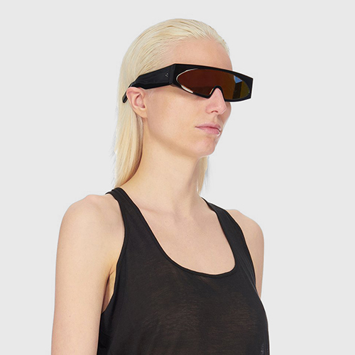 Yüksek kaliteli materyal seçimleriyle büyük beğeni toplayan gözlükler hazırlayan Rick Owens, bu kez fütürizm akımından esinlenerek akıllı gözlükleri anımsatan bir yorumla bu şık modeli sunuyor.