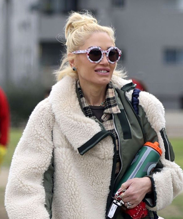 Özellikle sahne için tercih ettiği sıra dışı kostüm seçimleriyle ikonik isimler arasındaki yerini koruyan güzel şarkıcı Gwen Stefani’yi günlük tarzıyla ve kendi markası olan Lamb güneş gözlüğüyle görüyoruz.