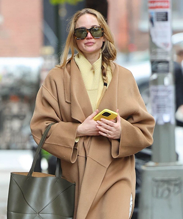 Açlık Oyunları film serisiyle Hollywood oyuncuları arasında güçlü bir çıkış yapan dünyaca ünlü aktris Jennifer Lawrence, trençkot ve sarı şalını Stella McCartney güneş gözlüğüyle birleştirmiş.