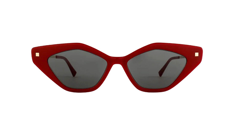 Mykita fuses modern design with sharp geometries in this striking cat-eye, rendered in a rich red tone. The matte frame contrasts boldly with dark lenses, while metal temple details bring an elegant balance to the design. With its architectural lines and sophisticated use of color, this piece makes a compelling statement for those looking to stand out in style. You must try this model.