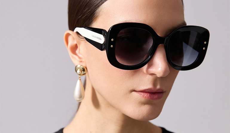 Crafted from acetate with contrasting temple inserts, this elegant oversized design comes with a detachable chain inspired by Herrera’s signature jewelry, adding a dazzling touch to any ensemble.