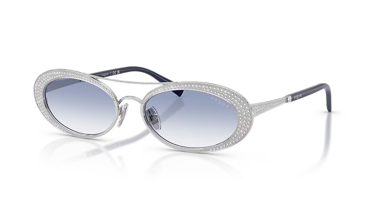 With its dynamic shape, Vogue delivers a refined expression of modern femininity. The silver-toned metal frame, adorned with sparkling stone details, stands out with its chic browline accent. Vogue’s logo on the lenses add a polished touch, while the strong silhouette and flowing lines make this piece a striking complement for those looking to make a statement.
