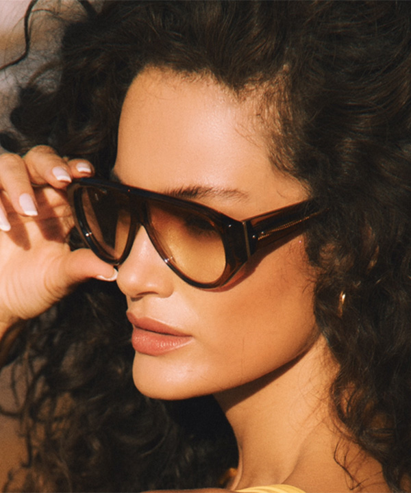 Sunday Somewhere’s new sun collection reveals, upon closer look, a diverse interplay of forms, colors and materials that integrate seamlessly both with one another and with the optical series. Opal introduces a slim, tapered cat-eye rendered in fine-quality acetate, defined by clean lines and a universally flattering silhouette. Sleek and lightweight with a whisper of nineties style, it lends understated cool to the edit. Forest Multi Havana and Tortoise Red ground the palette, each featuring the collection’s crystal-inspired temple detailing. Black Crystal heightens this effect, pairing a transparent temple front that gradually transitions into a tortoise pattern at the tip. The look is dimensional and aligned with the collection’s crystalline influences. Petunia unfolds with an exaggerated, rounded geometric form, designed for the boundary-pushing wearer who loves to stand out and treats fashion as a true expression of self. Daring, glamorous, and sculptural, it commands attention with ease. Multi Havana blends shimmering purples, greens, and muted neutrals for a gleaming, jewel-like finish. Black Havana and Purple Havana continue the palette with rich tones that intensify their dramatic profile. Durable rivet hinges adorned with the iconic palm tree logo complete the frame with a distinctive hallmark detail. Olive sets the tone for Sunday Somewhere’s sun debut with an oversized flat-top aviator shaped in premium acetate. Burgundy Blue leads the palette, pairing warm-tinted lenses with vibrant two-tone colorplay for a confident, contemporary statement. Teal and Black expand the story with saturated finishes refined by the brand’s signature accents, with the palm tree emblem finely embossed on the durable rivet hinges, decorative end caps, and temple tips. Peony transforms the classic aviator with a modern, fashion-forward lens. Slim, sculpted acetate forms its clean structure, while a softly contoured brow bar introduces gentle definition. Tailored proportions flatter narrower face shapes yet retain a sense of polished boldness. Colourways include Tortoise Terracotta, and Black Multi, each elevated by a rivet hinge finely detailed with the palm tree logo, underscoring the meticulous craftsmanship at the heart of the brand’s design philosophy. On the other hand Andy is constructed in stainless steel and infused with vibrant color lenses. Linear temple detailing and the SS monogram nose pads sharpen its minimalist identity. Effortlessly cool with a relaxed sophistication, Andy moves seamlessly from sunlit coastlines to polished city dressing. Finishes include Gold, Copper, and Silver. Suja II modernizes old Hollywood glamour for today’s style-conscious wearer. Its delicate geometric construction is crafted in stainless steel for a weightless feel. Intricate textural detailing across the frame, shaped by carved edges and gentle contours, lends the design a quiet depth. Along the temples, pressed-leaf motifs highlight the artistry and texture that define the style. Rose Gold introduces a luminous sheen paired with blue rose gradient lenses for a sophisticated contrast, while Gold offers a radiant alternative with caramel brown ombre lenses.