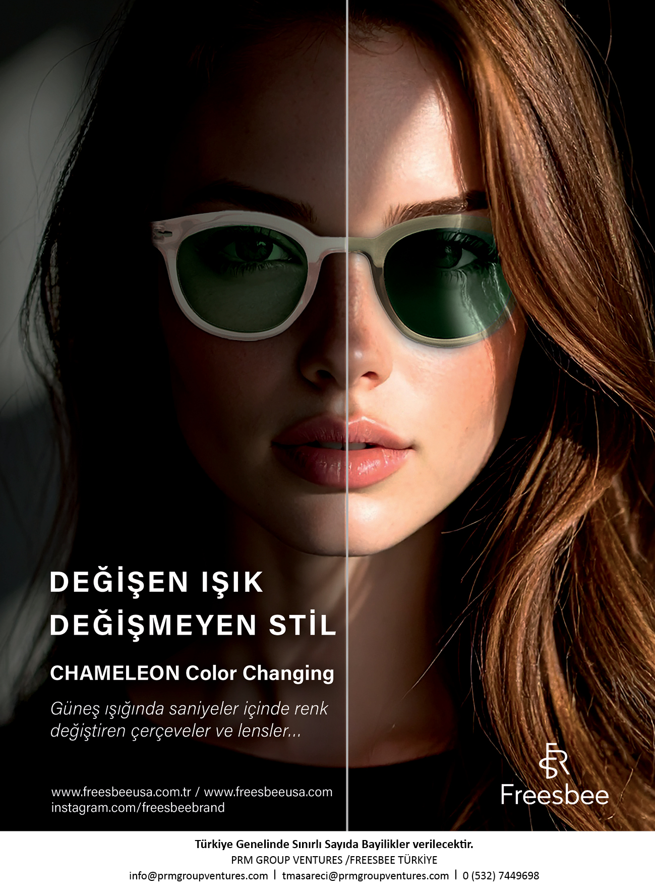 Prm Mağazacılık aracılığıyla Türkiye pazarıyla buluşan Freesbee, en yeni koleksiyonu Chameleon’u beğenilere sunuyor. Tek gözlükte iki farklı stil ve kullanımı vadeden koleksiyon, selülozik asetat renkli çerçeveler ile renkli polarize fotokromik camların birlikte çalıştığı çift dönüşüm yaklaşımı ile dikkatleri üzerine çekiyor. Renkli çerçeve ve fotokromik camların eşzamanlı renk değiştirmesine olanak tanıyan bu yaklaşım sayesinde, kullanıcı güneş altında daha derin ve karakterli, iç mekanda ise yalın ve rafine bir ifadeye tek modelle geçiş yapabiliyor. Fotokromik camların farklı ışık koşullarına göre saniyeler içindeki bu akıcı geçişi, renkli çerçevelerle kurduğu ton uyumları sayesinde görsel bütünlüğü güçlendiriyor; Chameleon serindeki polarize seçenekler ise parlamayı azaltarak bu estetik bütünlüğe işlevsel netlik katıyor. Koleksiyonun aktivasyon UV seviyesi sıcaklığa bağlı olmakla birlikte, araç camlarının UV filtreleri fotokromik aktivasyonu sınırlayabilmektedir. Hafif yapıları, dengeli tutuşları, net görüş sunma özellikleriyle üstün konfor sunan Freesbee Chameleon, üniseks tasarımlarında markanın imzası Kaliforniya etkisini modern şehir çizgileriyle birleştiriyor. Tasarımlarda tercih edilen minimal formlar, canlı olduğu kadar sofistike olan renk paletini öne çıkarıyor.
