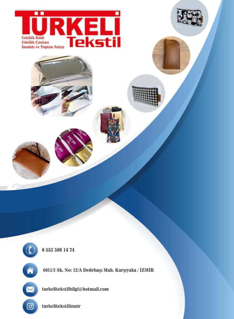 Türkeli Tekstil olarak optik sektörünün bir parçası olmaktan mutluluk duyuyoruz. Yurt içi ve yurt dışı için tüm ebatlarda deri ve kumaştan mamul gözlük çantası ve koruyucu kılıflar üretiyoruz. Üretimlerimizin yüksek kalitedeki materyallerle, titizlikle yapılması bizim için büyük önem taşıyor. Optik sektörü haricinde Türkeli Tekstil olarak aynı zamanda yine tüm ebatlarda makyaj çantası imalatı ve toptan satışını da gerçekleştirmekteyiz.